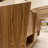 With Integrated PullsDouble sink base. Straight fronts. Walnut plywood construction. Vertical grain direction. Awning doors with integrated solid walnut pulls. Drawers in solid walnut, dovetail joinery and soft close hardware.