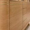 With Brass InlaysDouble sink base. White oak plywood construction. Horizontal grain direction. Drawers in solid white oak, dovetail joinery and push to open hardware.