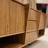 With Chianti CeruseDouble sink base. Baltic birch plywood construction. Ceruse finish over white oak. Vertical grain direction. Hidden roll-out drawer. Removable side panels. Drawers in baltic birch, dovetail joinery and push to open hardware.